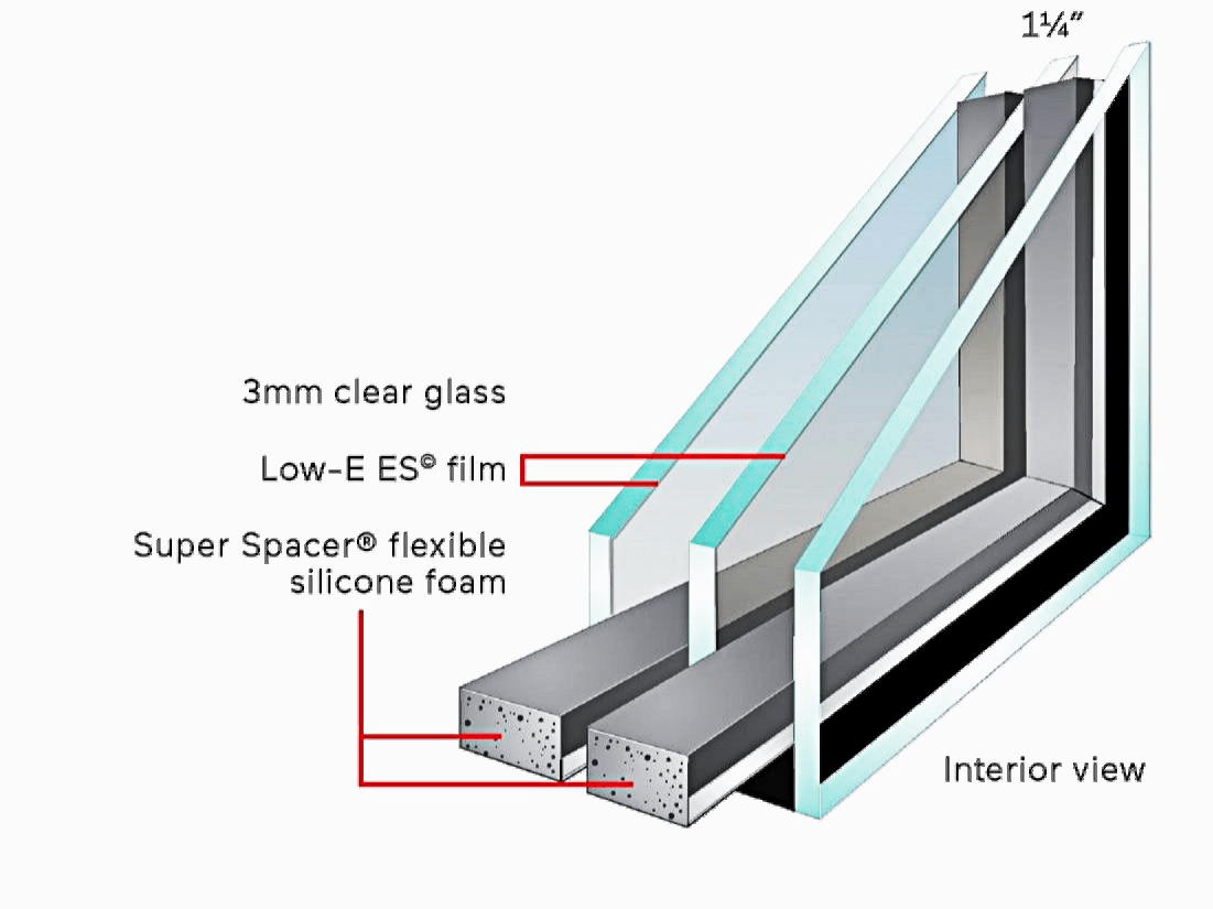Sol glasset vi bruker har en neutral farve, så det ikke adskiller seg vesentlig fra standard lavenergiglass.